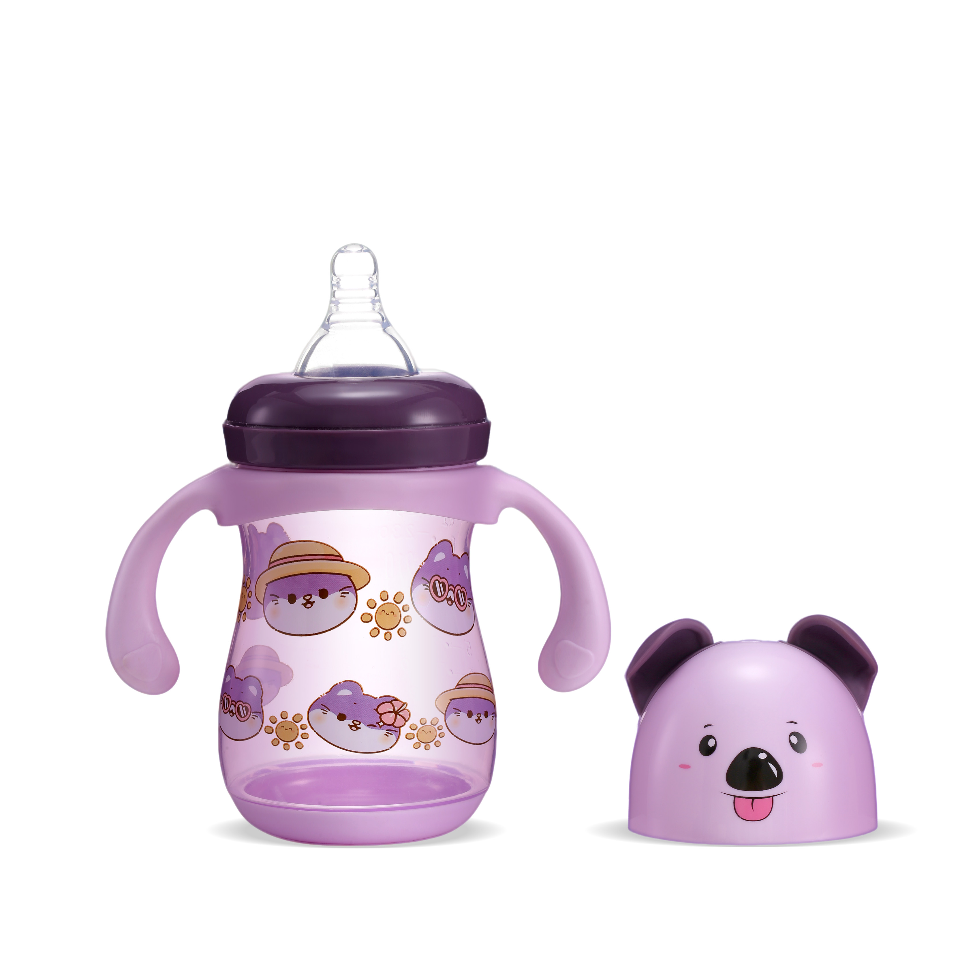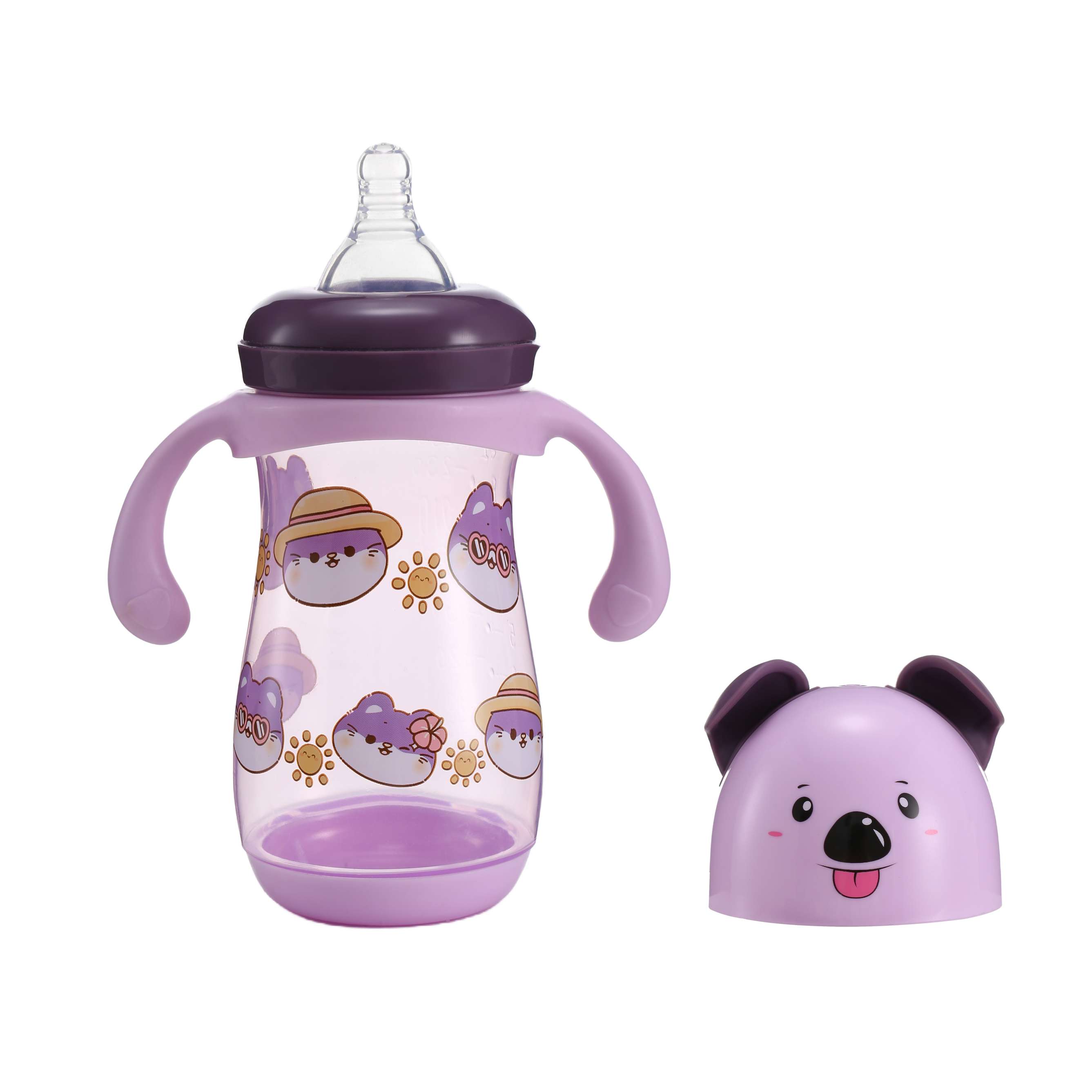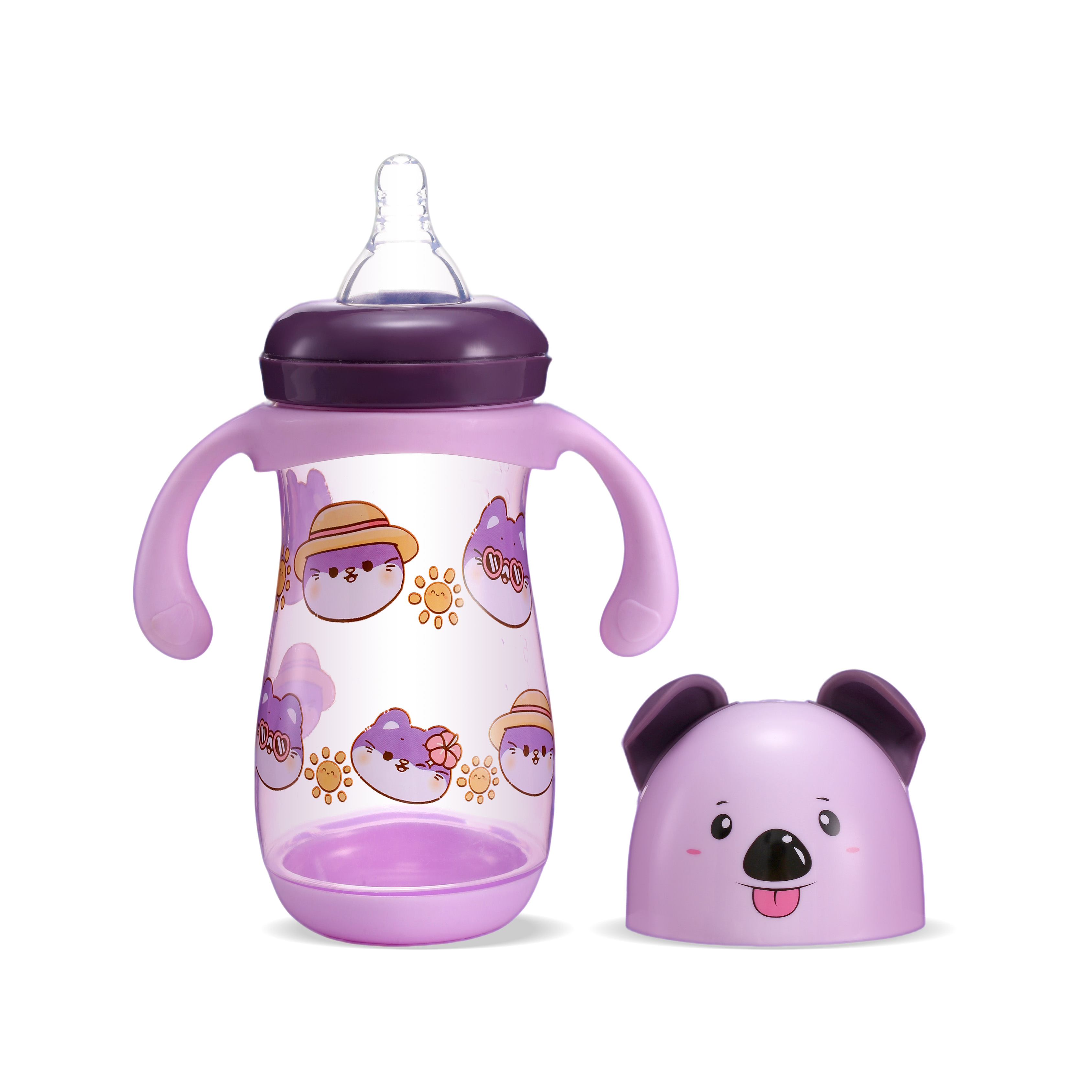 FISH Cartoon Sheep Bottle - Where Fun Meets Function! Crafted with premium BPA-Free PP+silicone, featuring exclusive sheep horn-style cap & vibrant animal prints. Ergonomic curved handles + dual-size 250ml/350ml (pastel pink/blue/green/purple). Expertly designed for babies 6-24 months. Gift-ready premium packaging.