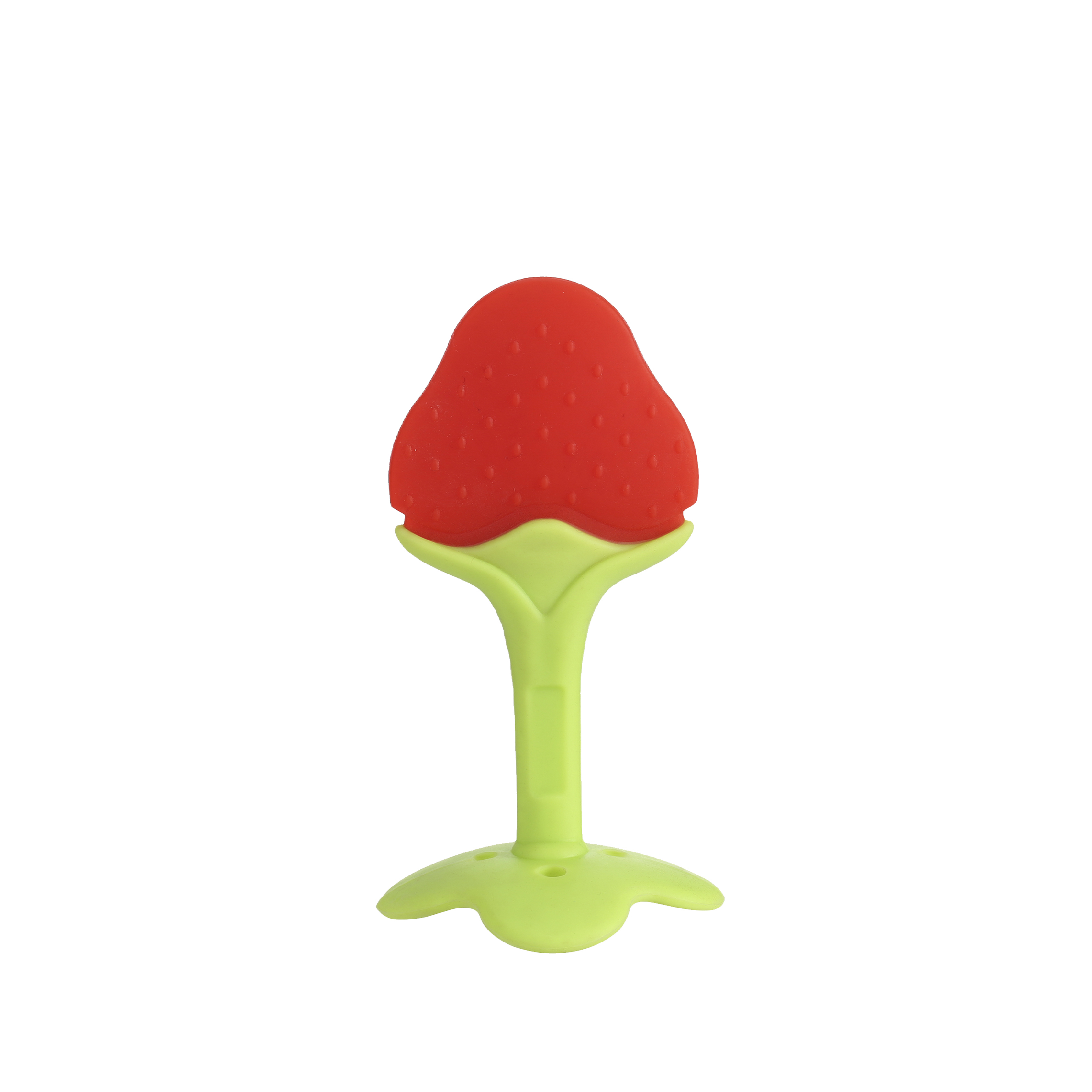 Textured Surface: Tiny raised dots on the strawberry surface provide extra gum massage and oral development benefits.