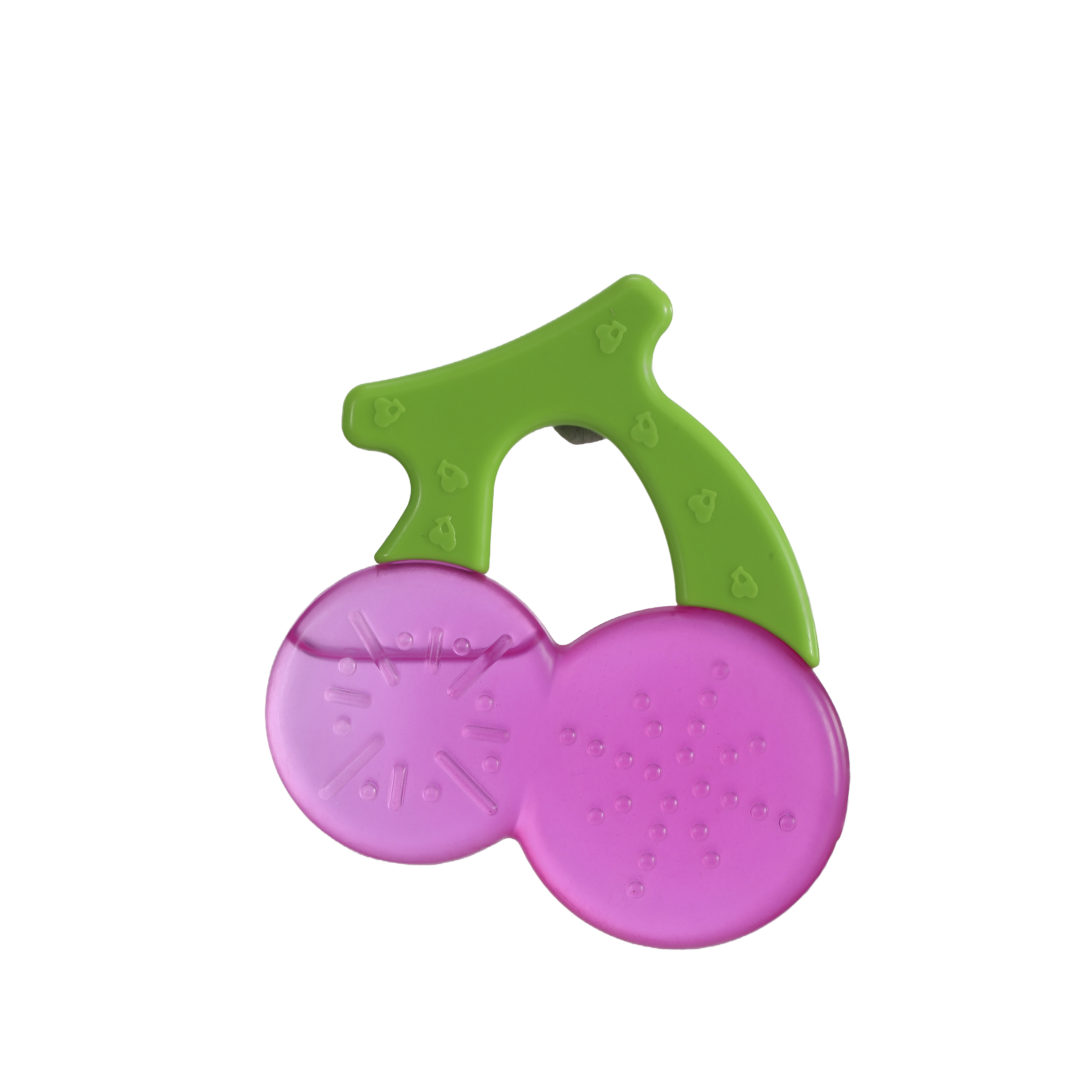 Cute Fruit Design: Bright red cherry shape with a green handle, visually appealing and fun for babies.