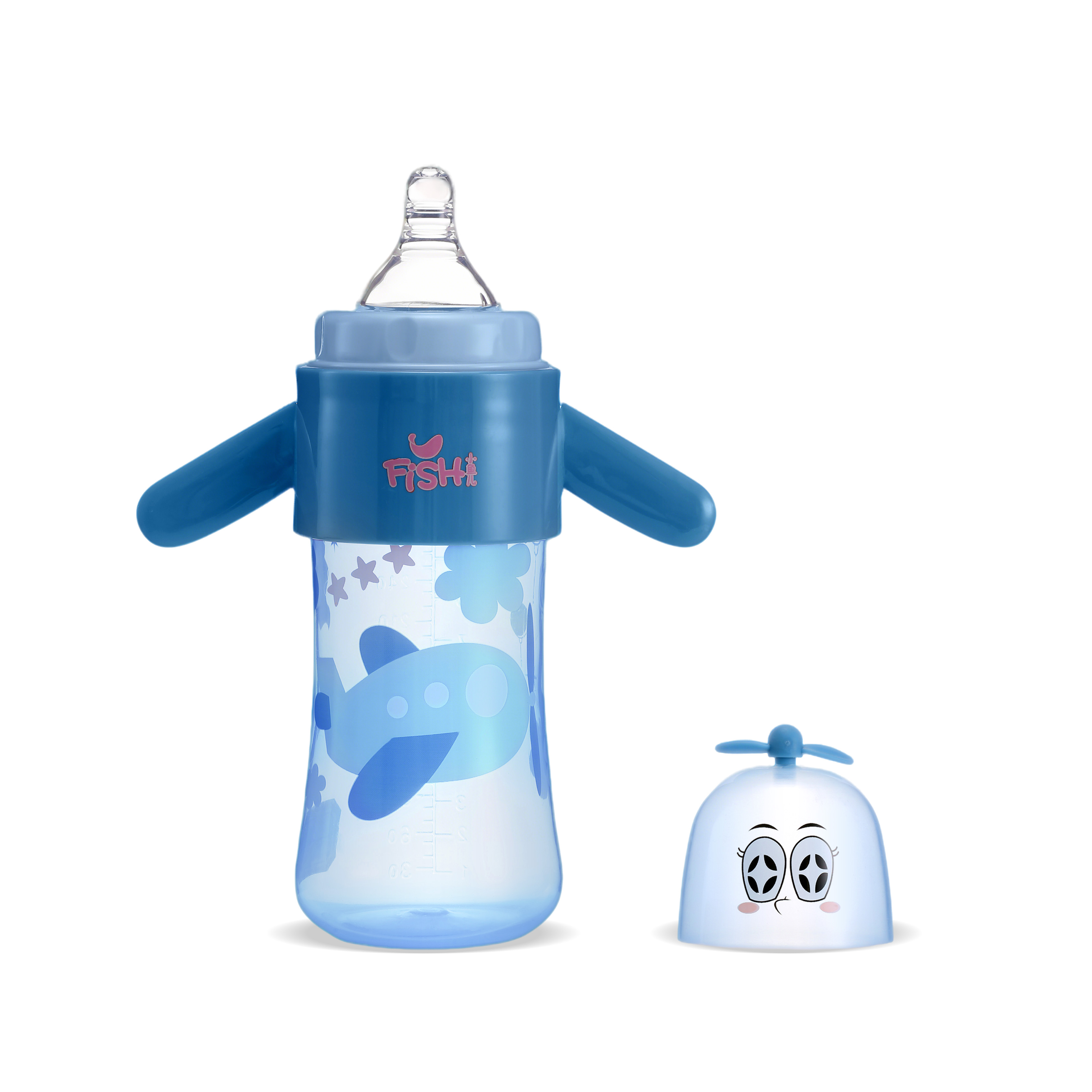 FISH Airplane-Shaped Bottle – Propeller cap & wing handles! BPA-Free PP+silicone, 250ml/300ml in pastel shades. For little aviators 6-24M.