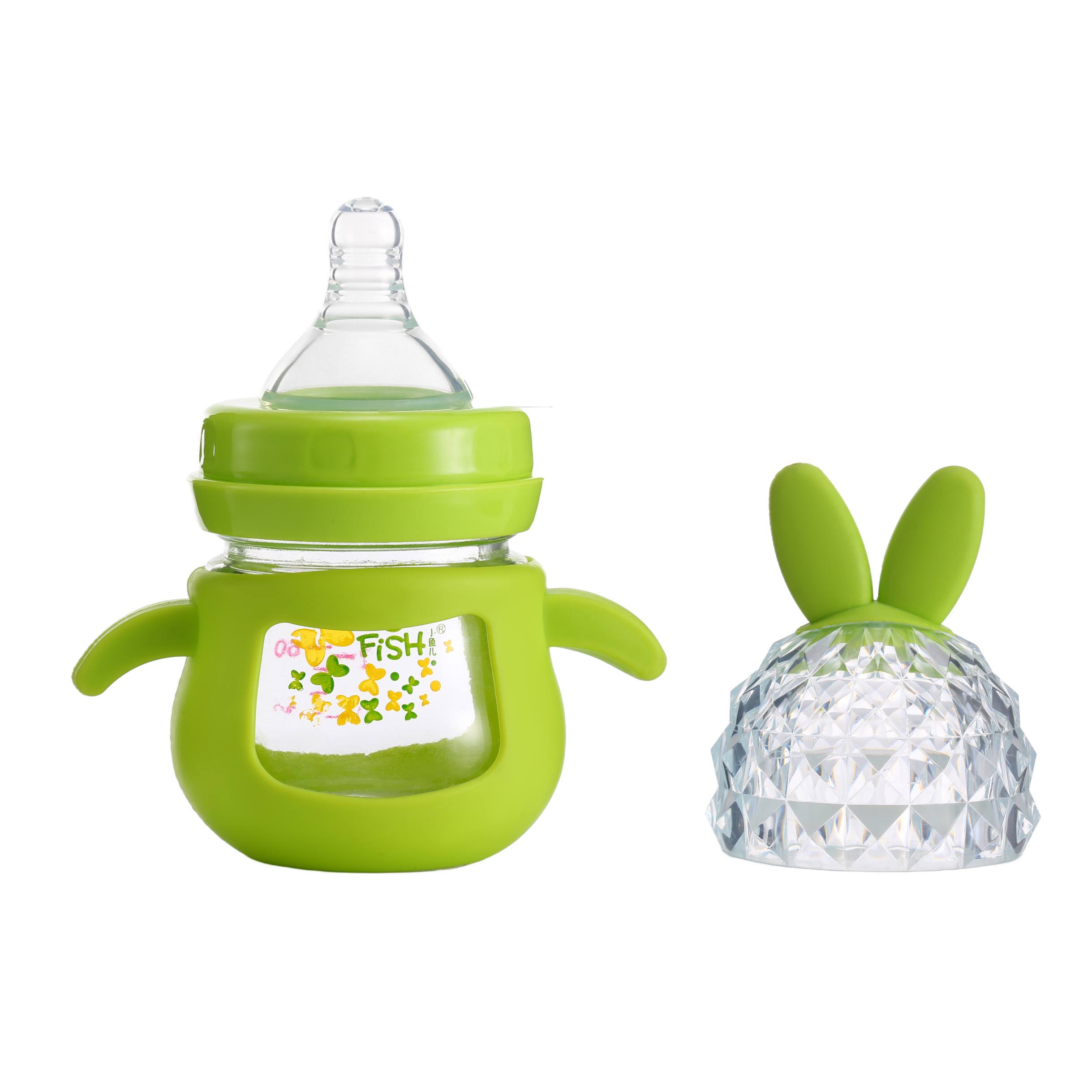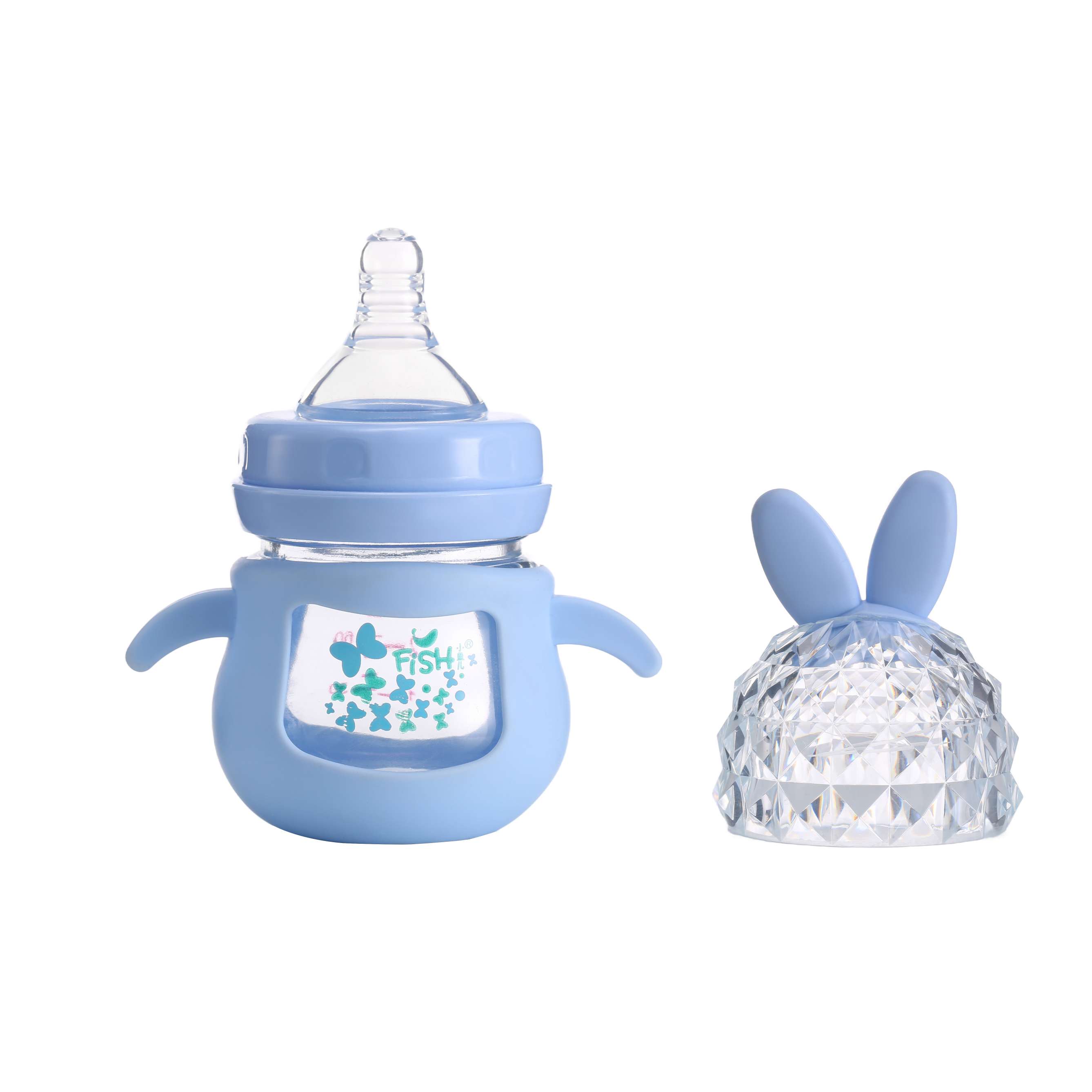 FISH Bunny Gem Glass Bottle - Elegant Crystal Ear Design & Newborn-Perfect 80ml.