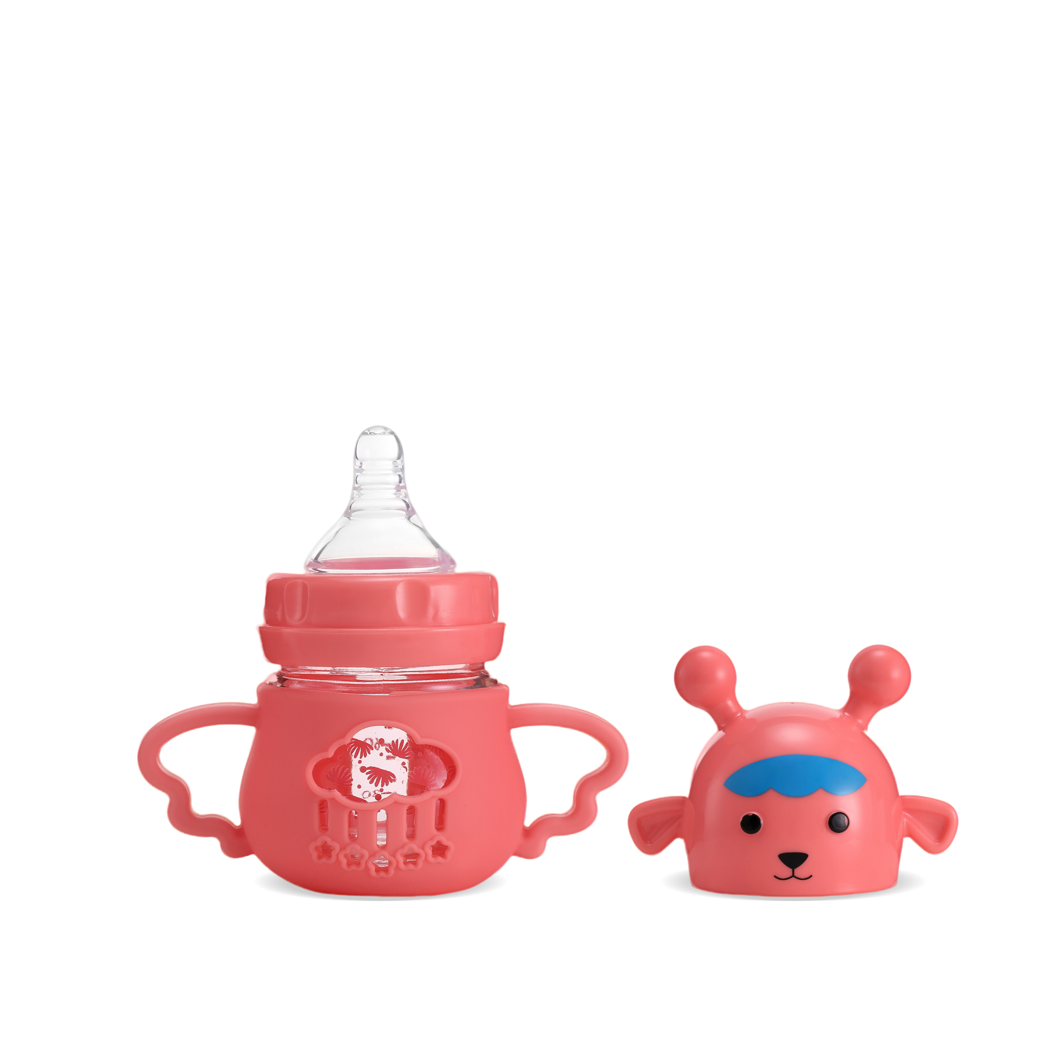 FISH Deer and Robot Cartoon Bottle – Whimsical cactus top + rounded body! Plant-inspired design, borosilicate glass. 80ml/150ml in dreamy pink/blue. Nature-themed gift for 0-12M.