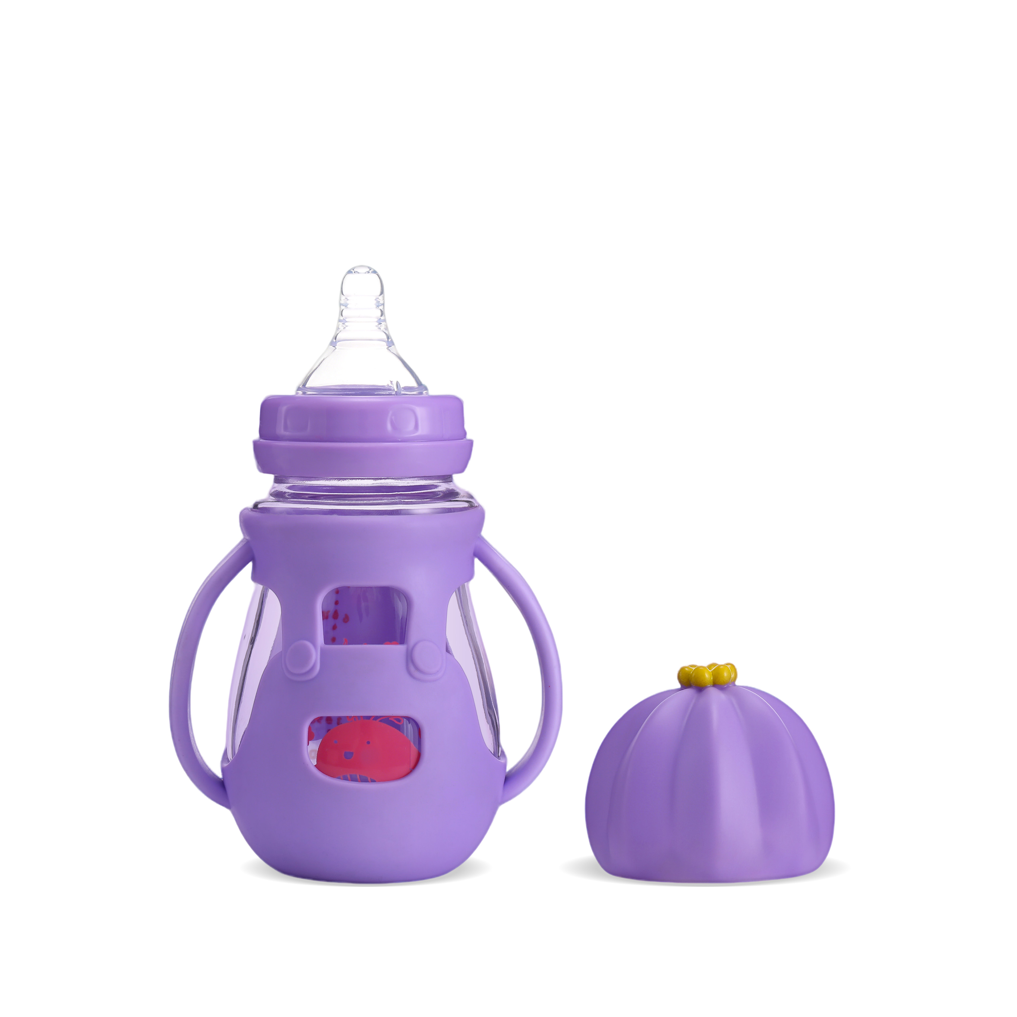FISH Cactus-Shaped Glass Baby Bottle with Botanical-Touch Top & Borosilicate Glass.