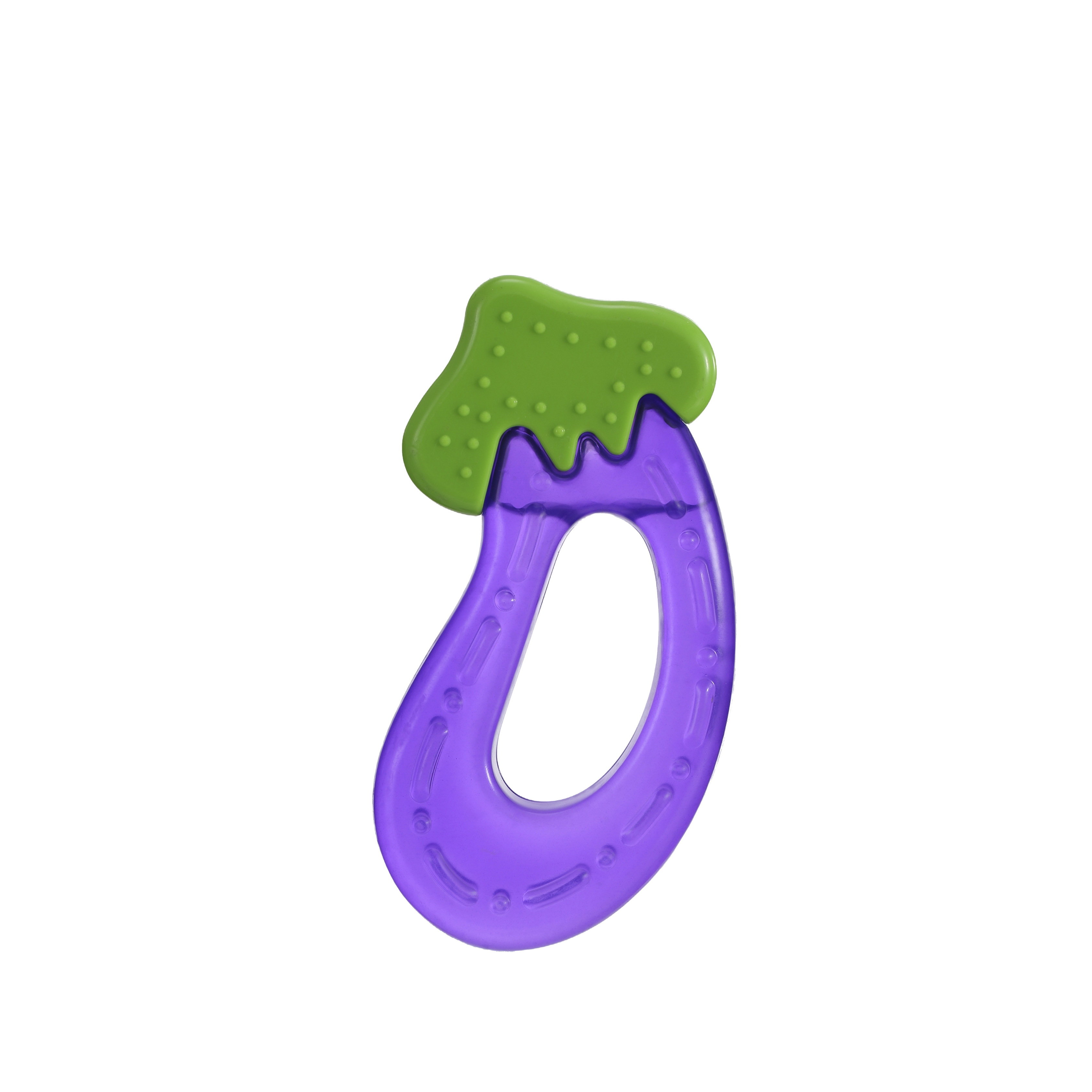 Fun Vegetable Design: Unique eggplant shape in bright purple and green, stimulating visual interest and encouraging chewing.